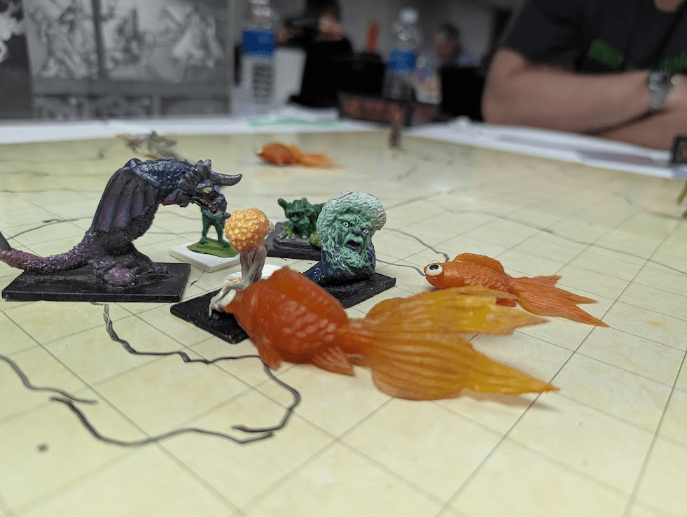 I played 15.5 hours of classic Advanced Dungeons & Dragons at Gary Con in March, and 12 of those represented a high point in my personal RPG narrative, because I spent a trio of four-hour sessions gaming under the Dungeon Mastering of Erol Otus. In addition to being a super genial guy at the table and away from it, Erol’s storytelling and style is very much in line with the type of art he’s known for: We played not as humanoids, but as a party of strange and diverse creatures; joining our incredibly detailed figurines on the table were an assortment of squishy little rubbery monsters like you get from gumball machines; and otherworld-evoking props salvaged from appliances. It was delightful and immersive and B-movie pulpy and I loved it.