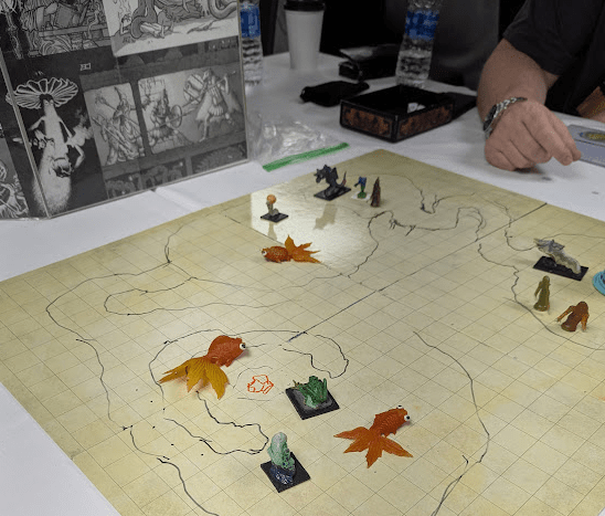 Because he doesn’t like to run the same adventure repeatedly, Erol’s approach to his Gary Con sessions is to keep telling an ongoing story with a core group of characters, session-to-session and then year-to-year. So no matter who’s playing at the table, we’re all shaping this collective journey. Erol’s plans for the 2025 sessions were directly based on the character actions and outcomes from the 2024 player decisions and die rolls, and our stopping point last March is where this year’s adventurers will pick up the tale.