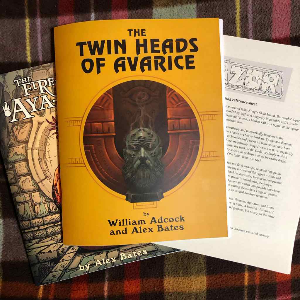 Azor – Alex Bates’ sword-and-sorcery lost-world game and setting. The Monday night crew playtested an upcoming adventure.
