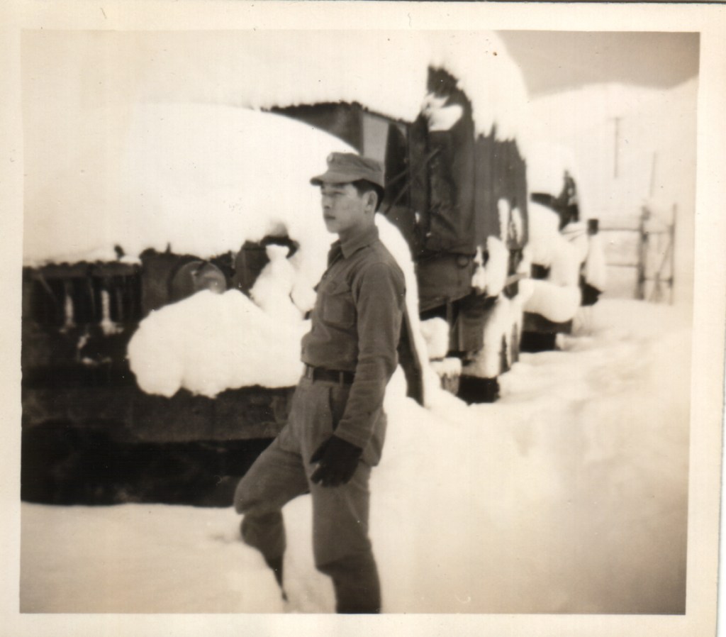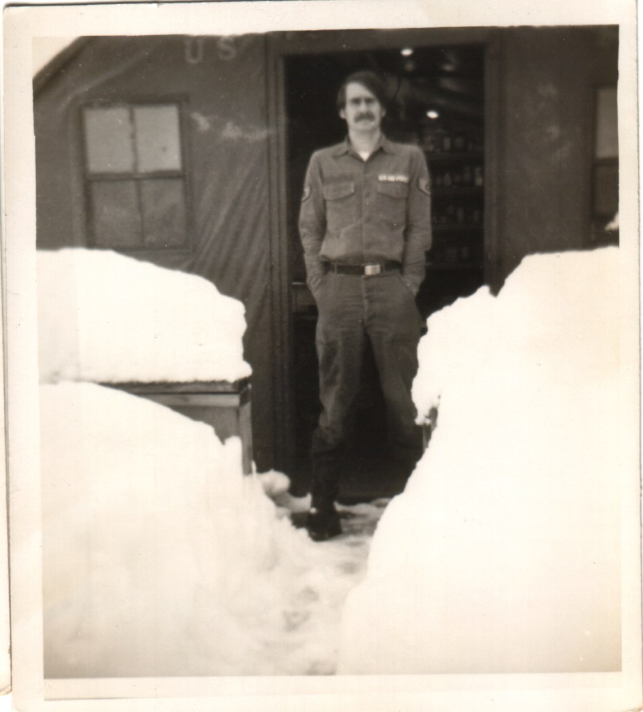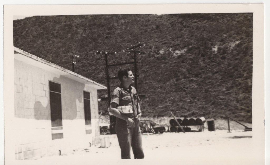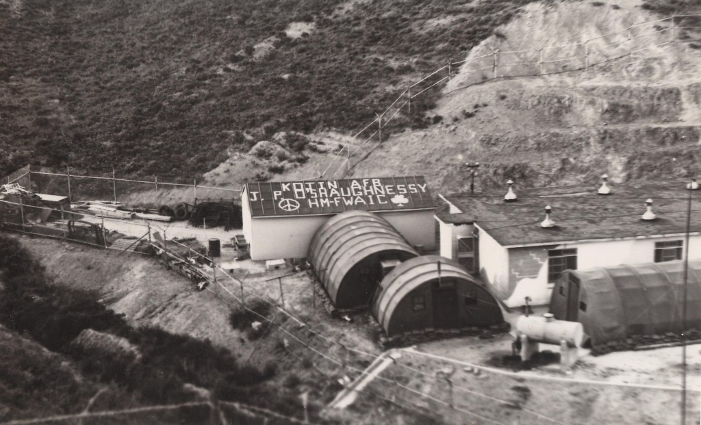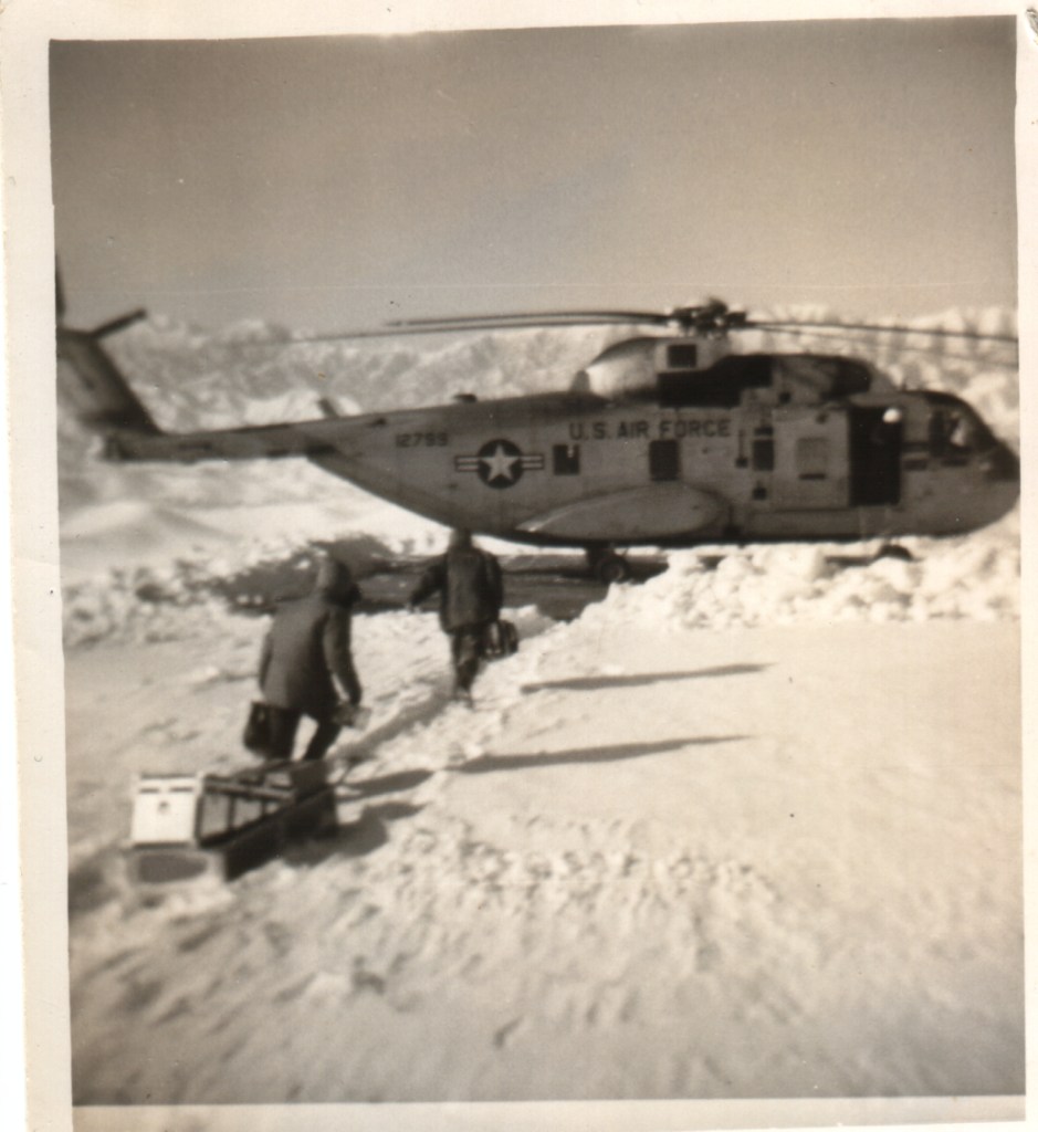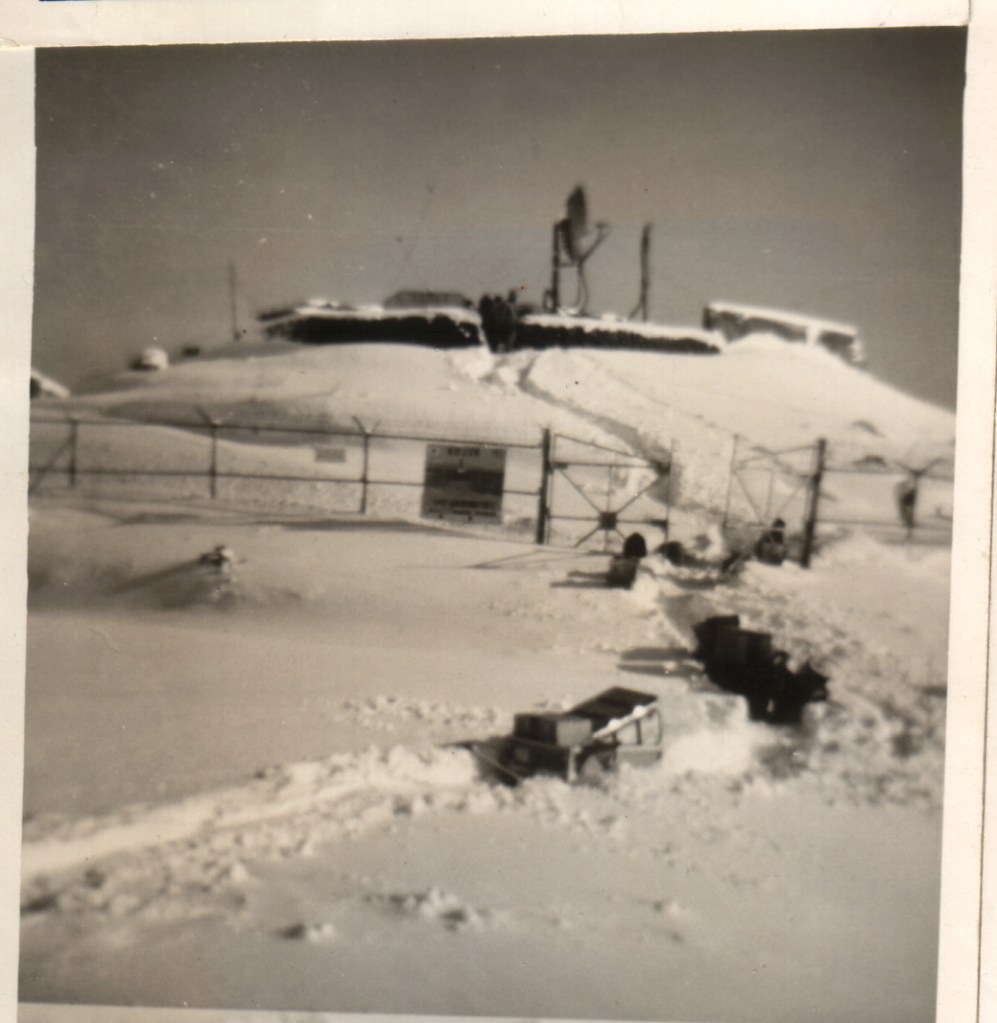 Photo courtesy of Pat Bachman, who noted: “Thought you might like to know that was the definition of an ‘unofficial’ Radio Code -269 – which was the name of the NCO club (269 Lounge). Would hear someone say ‘That’s a 2-6-9’ at least twice every day especially when they were the subject of a non-critical SNAFU.”Base camp. Photo courtesy of Pat Bachman.Photo courtesy of Dr. Bill Scarlett.Photo of Richard Booth courtesy of Dr. Bill ScarlettAt the top of the last curve leading up to the radar site, the wind was treacherous, nearly blowing you off the cliff when you had to walk up at times, such as during the snow storm. Photo & information courtesy of Dr. Bill Scarlett.Photo courtesy of Dr. Bill Scarlett.Photo courtesy of Dr. Bill Scarlett.Looking down at the barracks, chow hall, and club. Despite the snow, homemade sleds did not work, and they had to push all their supplies down the mountain. Photo & information courtesy of Dr. Bill Scarlett.Photo of Bill Scarlett courtesy of Dr. Bill ScarlettRadio/radar MTCE shack, call sign Singular 1. Aimed at Sojko (call sign Singular), about 1.5 hours south of Kojin. Photo & information courtesy of Pat Bachman.Front door security post. Photo courtesy of Pat Bachman.“It’s not THAT bad.” Photo & caption courtesy of Pat Bachman.“Notice that our Kojin radar site was north of the 38th Parallel, only about 5-10 miles from North Korea. According to the UN when the Korean War ended in 53, N. Korea was not to fly anywhere near the border. That’s why our radar kept an eye on their illegal flying which was only about 20-25 miles from us.” Photo & information courtesy of Dr. Bill Scarlett.Lifer – the site mascot. Photo courtesy of Pat Bachman.Mine field above the base, with the radar antenna just visible at the upper right. Photo courtesy of Pat Bachman.NCO club. Photo courtesy of Pat Bachman.Placement on the “short-timers'” board in the 269 Lounge represented placement in line for catching the “Freedom Bird” (represented by the helicopter) and rotating out. The Freedom Birds belonged to the Army and were part of the Jolly Green Giants. The name tags under the helo are the 10 who had recently left site – pic shows 11 because two rotated out on same date. Tags at the very bottom-left were visitors (VIP’s or pilots making first trip to the site). Tags on the donkey cart were the “Mule skinners” – truck drivers who routinely delivered supplies. Photo & information courtesy of Pat Bachman.View east of antenna – photo courtesy of Pat Bachman.View west of antenna – photo courtesy of Pat Bachman.