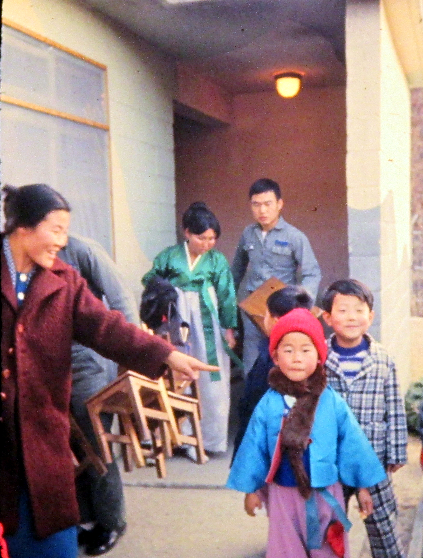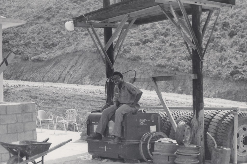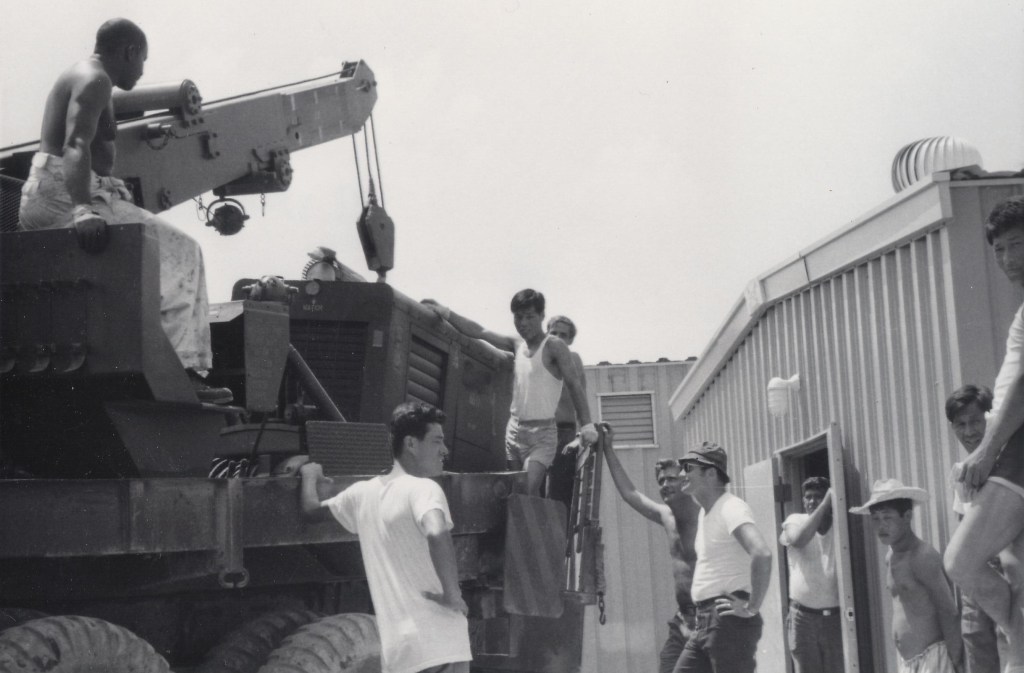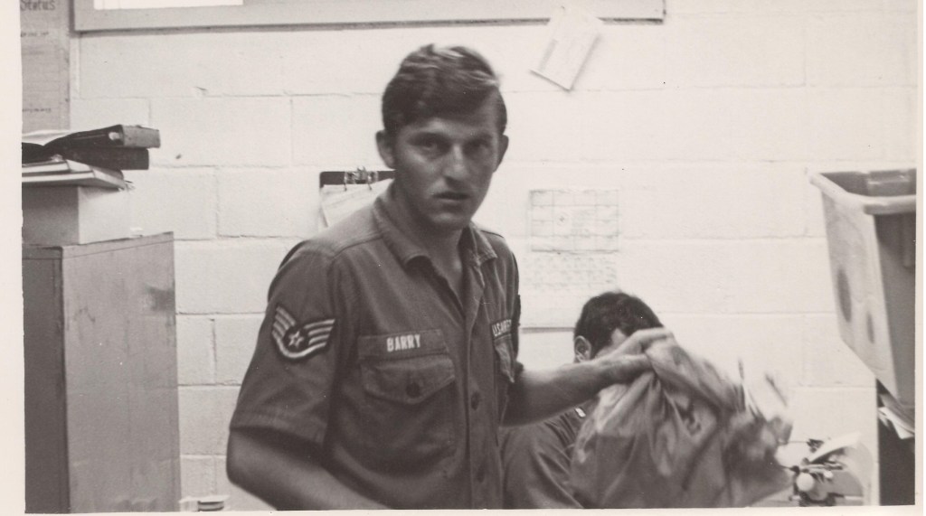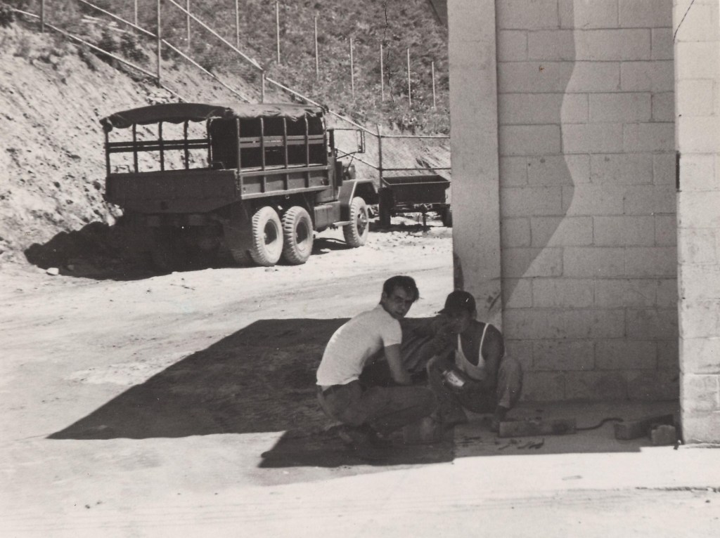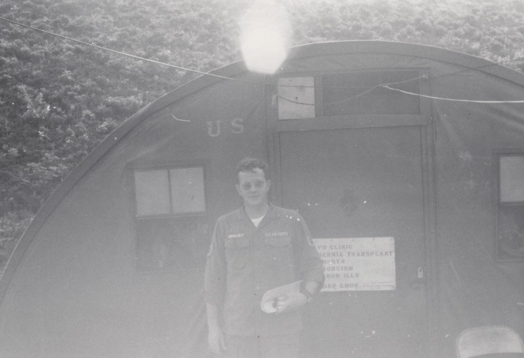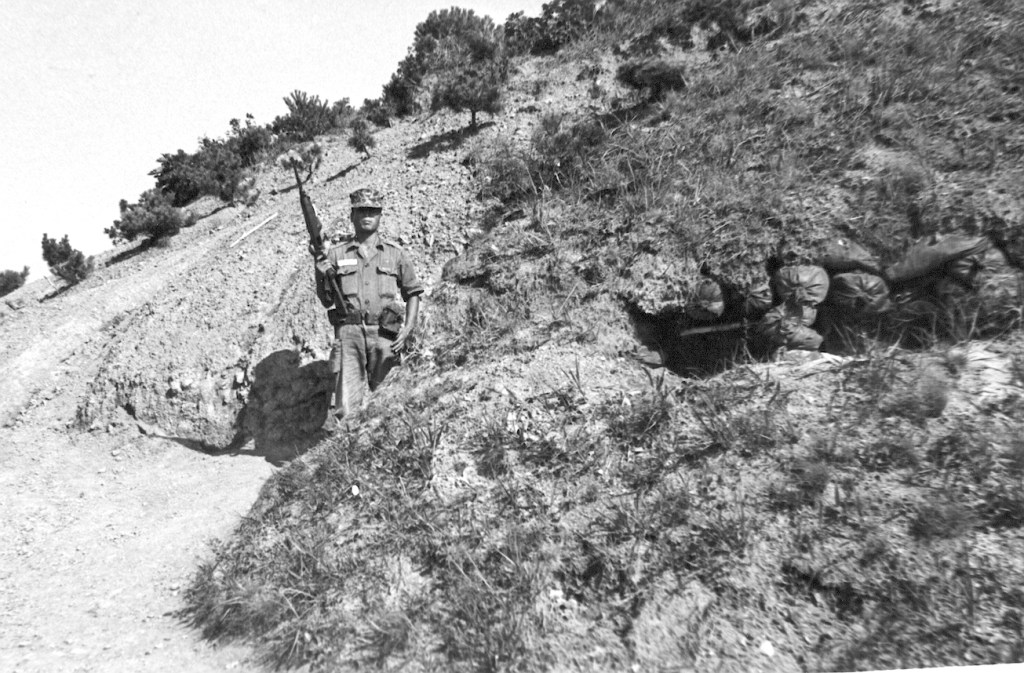 Photo courtesy of Pat Bachman, who noted: “Thought you might like to know that was the definition of an ‘unofficial’ Radio Code -269 – which was the name of the NCO club (269 Lounge). Would hear someone say ‘That’s a 2-6-9’ at least twice every day especially when they were the subject of a non-critical SNAFU.”Base camp. Photo courtesy of Pat Bachman.Photo courtesy of Dr. Bill Scarlett.Photo of Richard Booth courtesy of Dr. Bill ScarlettAt the top of the last curve leading up to the radar site, the wind was treacherous, nearly blowing you off the cliff when you had to walk up at times, such as during the snow storm. Photo & information courtesy of Dr. Bill Scarlett.Photo courtesy of Dr. Bill Scarlett.Photo courtesy of Dr. Bill Scarlett.Looking down at the barracks, chow hall, and club. Despite the snow, homemade sleds did not work, and they had to push all their supplies down the mountain. Photo & information courtesy of Dr. Bill Scarlett.Photo of Bill Scarlett courtesy of Dr. Bill ScarlettRadio/radar MTCE shack, call sign Singular 1. Aimed at Sojko (call sign Singular), about 1.5 hours south of Kojin. Photo & information courtesy of Pat Bachman.Front door security post. Photo courtesy of Pat Bachman.“It’s not THAT bad.” Photo & caption courtesy of Pat Bachman.“Notice that our Kojin radar site was north of the 38th Parallel, only about 5-10 miles from North Korea. According to the UN when the Korean War ended in 53, N. Korea was not to fly anywhere near the border. That’s why our radar kept an eye on their illegal flying which was only about 20-25 miles from us.” Photo & information courtesy of Dr. Bill Scarlett.Lifer – the site mascot. Photo courtesy of Pat Bachman.Mine field above the base, with the radar antenna just visible at the upper right. Photo courtesy of Pat Bachman.NCO club. Photo courtesy of Pat Bachman.Placement on the “short-timers'” board in the 269 Lounge represented placement in line for catching the “Freedom Bird” (represented by the helicopter) and rotating out. The Freedom Birds belonged to the Army and were part of the Jolly Green Giants. The name tags under the helo are the 10 who had recently left site – pic shows 11 because two rotated out on same date. Tags at the very bottom-left were visitors (VIP’s or pilots making first trip to the site). Tags on the donkey cart were the “Mule skinners” – truck drivers who routinely delivered supplies. Photo & information courtesy of Pat Bachman.View east of antenna – photo courtesy of Pat Bachman.View west of antenna – photo courtesy of Pat Bachman.