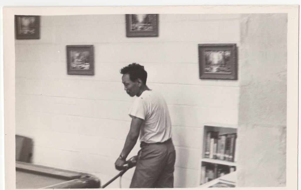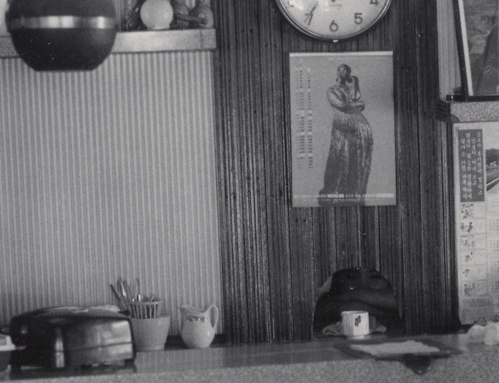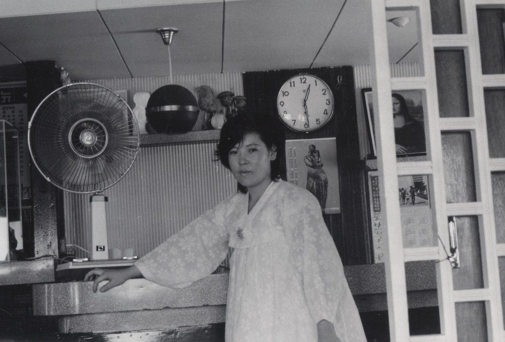 There’s a woman peering out from that little opening behind the counter. It took me awhile to see.